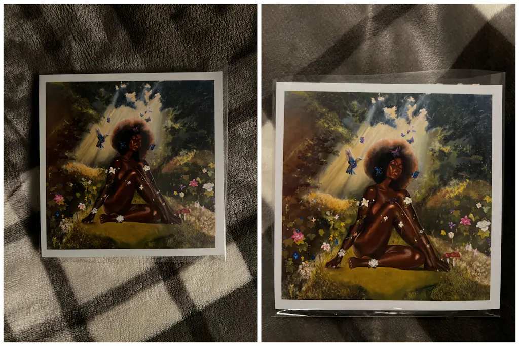 Please note smaller prints come packaged in clear pockets; remove carefully to avoid the sticky part sticking to the back of the print.