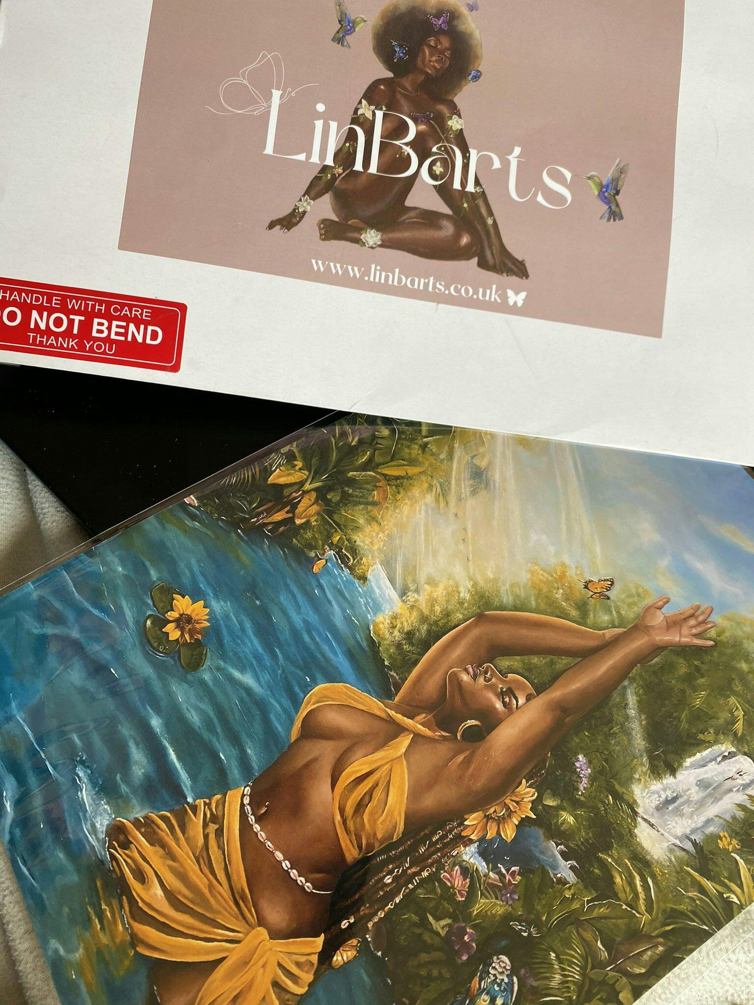 Please note smaller prints come packaged in clear pockets; remove carefully to avoid the sticky part sticking to the back of the print.