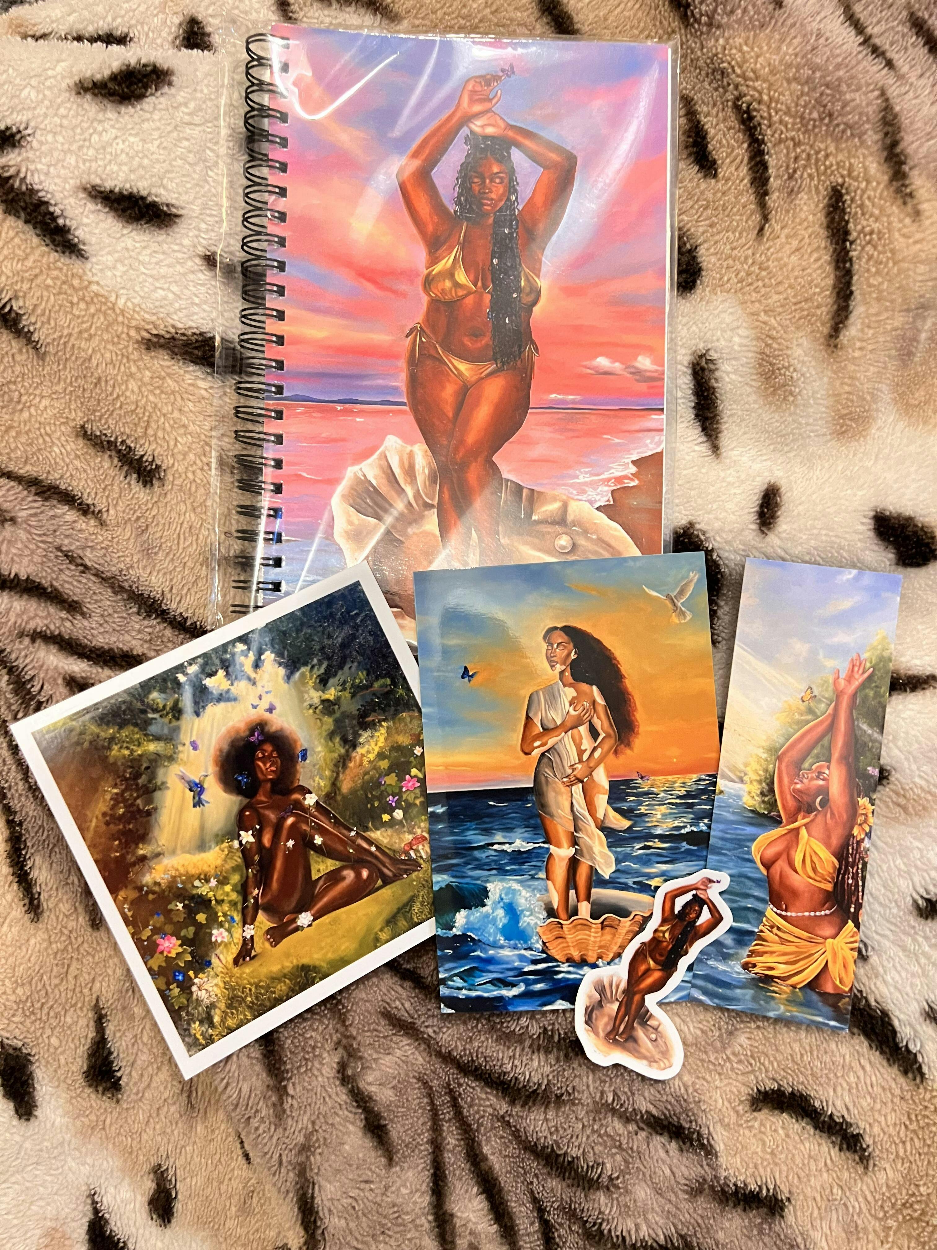 I met this artist at Curly Treats festival for their black history month event. Her art stood at to me and I felt so connected when she explained the meaning behind the art. I had to get a bit of everything and I absolutely love each item. I am yet to use my new notebook!The artist was so lovely!